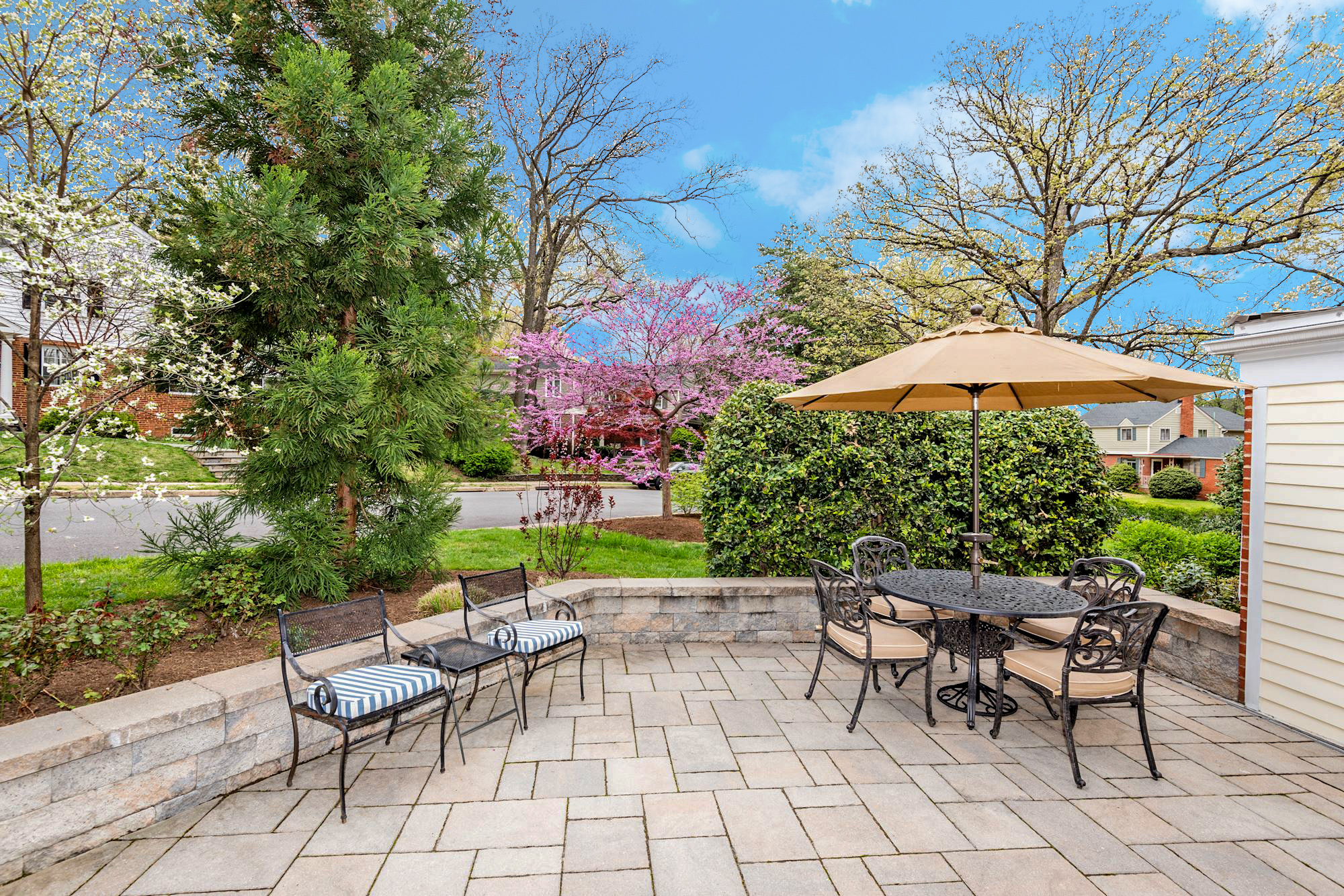The home sits on a large, flat lot with an expansive pavered patio surrounded by professional landscaping and mature trees, all in close proximity to the major commuter arteries, great parks, and shops.